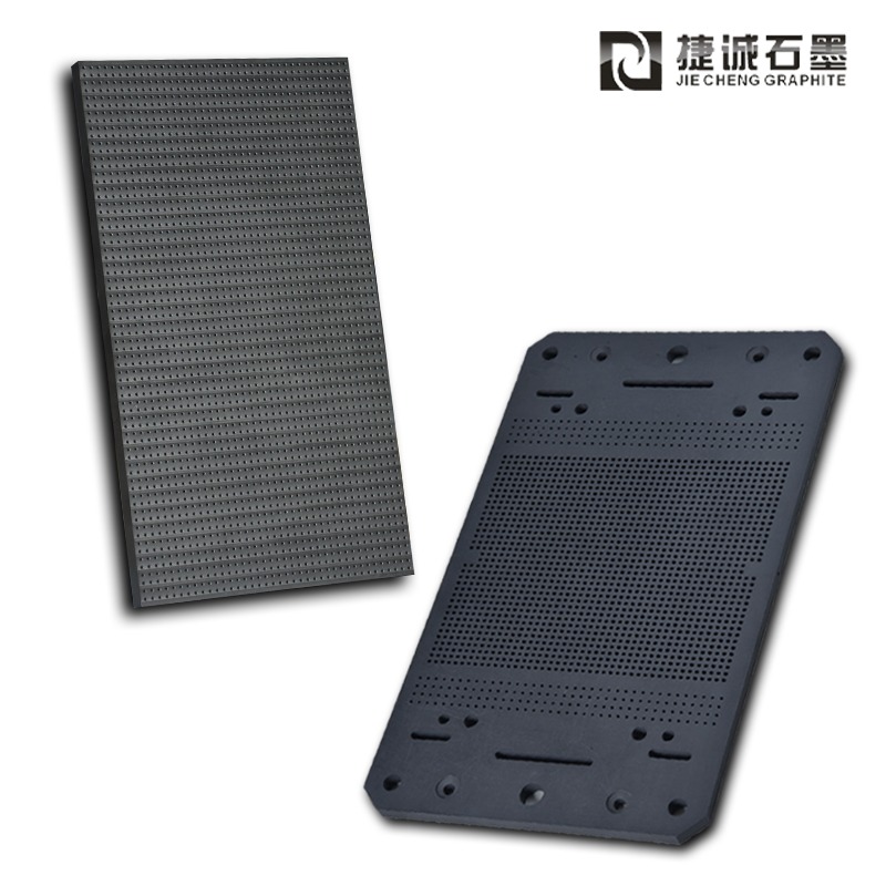 利用人造石墨材料熱變形極小的特點,可制造晶體管的燒結模具和支架,現已廣泛使用,它已成為發展半導體工業不可缺少的材料。此外,石墨模具也使用于鑄鐵用的鑄型,各種有色金屬用的耐久性鑄模,鑄鋼用鑄型,耐熱金屬(鈦,鋯,鉬等)用的鑄型及焊鋼軌用的鋁熱焊型的鑄型等。熱壓燒結金剛石工具用石墨模具,在金剛石工具制造過程中擔負著發熱元件和模具支撐的雙重作用,石墨模具質量的優劣,直接影響到金剛石工具的尺寸精度、外觀形狀等。